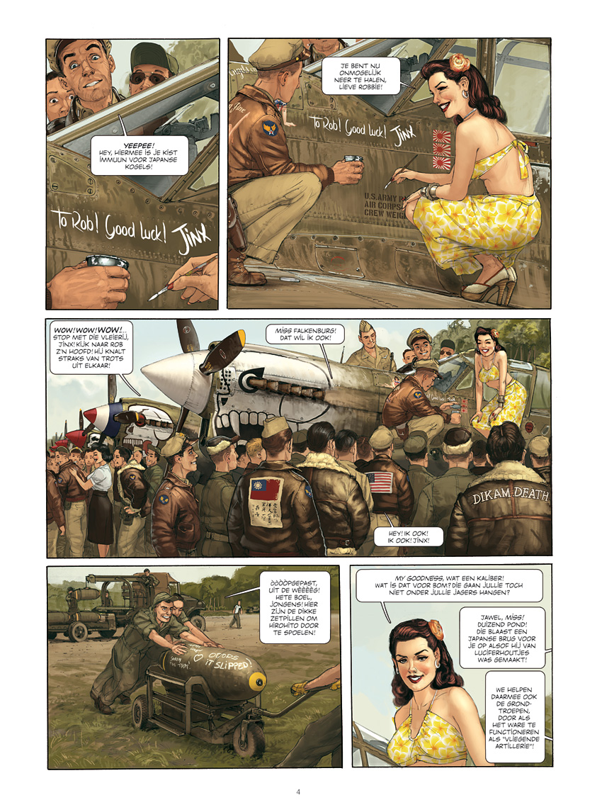 1944. Terwijl de Japanse troepen heel Birma bezetten en ondertussen India en China bedreigen, zorgen de piloten van de Amerikanen voor een gewaagde en gevaarlijke continue luchtbrug tussen de twee geallieerde landen om de Japanse opmars te stuiten. Angela McCloud is een 'WASP', een vrouw van de 'Woman Airforce Service Pilot'. Haar missie is haar 'C-47 Dakota' over het Himalaya gebergte te vliegen, om de Chinese bases te bevoorraden. Deze vormen het laatste blok, dat de oorlog zou kunnen doen kantelen. Tussen twee aanvallen van vijandelijke vliegtuigen door, zal 'Angel' zich moeten bewijzen om te worden toegelaten tot en het respect te winnen van de 'Burma Banshees' ... Het squadron dat vrachtvliegtuigen escorteert met de P40 Warhawk, versierd met een witte schedel. Een nieuw Tweede Wereldoorlog avontuur van topduo Yann en Romain Hugault (De Nachtuil, Edelweiss).