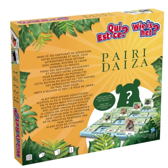 In dit meeslepende deductiespel vechten jij en je tegenstander het uit om te raden welk mysterieus dier achter de aanwijzingen schuilt. Stel slimme vragen en gebruik je logica om opties te elimineren en het geheime dier te ontdekken. Deze editie is geïnspireerd op de prachtige bewoners van Pairi Daiza. Klaar voor de uitdaging? Het is aan jou!