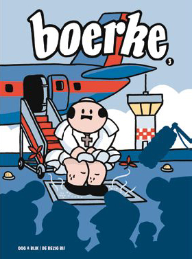 Pieter De Poortere ontmoette in het gehucht waar hij vandaan komt een vijfenzeventigjarige boer die een Thaise vrouw had laten overvliegen. Het personage Boerke is gebaseerd op het vreemde leven van deze boer. Nu, tien jaar later, is Boerke een geheel eigen karakter dat op een ogenschijnlijk naïeve manier tegen de rafelige randjes van de actualiteit op loopt. Net als bij The Simpsons maakt de kinderlijke eenvoud van kleuren en lijnvoering de cynische grappen van de De Poortere juist harder en sterker.