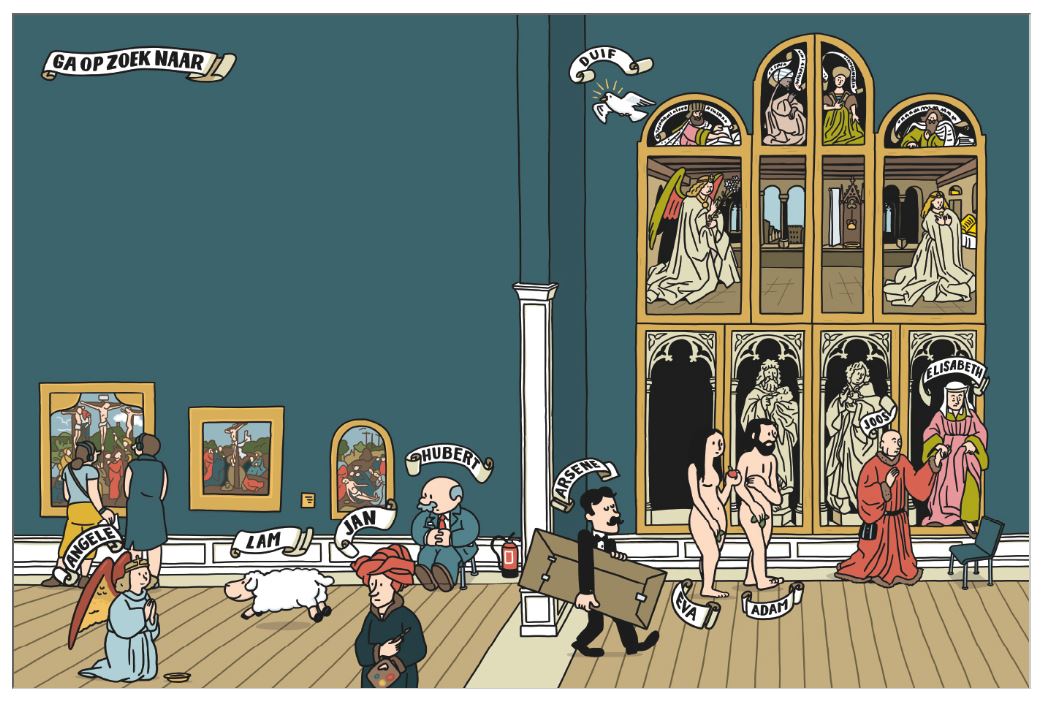 Naar aanleiding van de tentoonstelling “Van Eyck. Een optische revolutie” in het Museum voor Schone Kunsten Gent ..... Waar is Lam? Zonet stond het nog op het schilderij. Waar is het naartoe? Volg Lam op zijn spannende vlucht uit het museum, door de mooie stad Gent. Speur ook naar de andere verdwenen figuren en de vele verborgen details. Jong én oud ontdekken zo op een speelse manier het Lam Gods van de gebroeders Van Eyck.