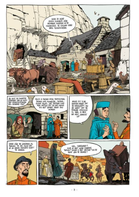 Deze strip bestaat ook in zéér gelimiteerde stripweb ersie op slechts 100 ex met een speciale omslag en ex-libris. Verloren Ziel (stripweb versie) Een middeleeuws verhaal. Gabriël kan de dood van zijn vader niet accepteren. Als zijn moeder, Pfilomene, ingaat op het aanzoek van Brifaut, ziet hij het vooruitzicht op een leven met deze weinig gewaardeerde stiefvader niet zitten. Op de dag van het vertrek naar hun nieuwe huis verdwijnt zijn zus, Helis, en blijft onvindbaar. Hun moeder maakt zich ernstig zorgen omdat de streek krioelt van de gevaarlijke rovers. Gabriël besluit Helis te gaan zoeken, die beweert dat hun vader nog leeft. Onderweg ontmoet hij de ridder Brabançon, die ermee instemt om hem te helpen. Hij ondekt dat Gabriël over verbazingwekkende vaardigheden beschikt en er verschijnen steeds vreemdere voortekenen die hem aanmoedigen om door te gaan. Wat volgt, is een avontuurlijke reis die leidt naar de grenzen van het vreemde en het fabelachtige, bezaaid met valkuilen, vreemde ontmoetingen en fantasieën die hij onder ogen zal moeten zien om volwassen te worden. ----------------------------------------------------------------------------------------------------------------------------------------------------------------------------------------------------- Matthieu Bonhomme geboren in Frankrijk (°1973) In het bezit van een technisch baccalaureaat met tekenoptie en een BTS in toegepaste kunst, werkt hij voor jeugdbladen als Robbedoes. Hij werkte samen met Rossi ( Jim Cutlass, WEST, Tirésias, Hera’s Glorie,…) in diens tekenstudio. Zijn eerste grote reeks en doorbrak had hij met de stripreeks De Heer der Dolende Zielen uitgegeven bij Dargaud op scenario van Vehlman. Hij ontving de Alph-Art voor het beste eerste album op het festival van Angoulême in 2003 met 'L'âge de la raison' een strip die nooit vertaald werd. Matthieu creëert 'Esteban', zijn eerste solo-strip in het tijdschrift geregisseerd door Gwen de Bonneval en uitgegeven door Milaan, dat zeer succesvol is. 'Messire Guillaume' ofwel “ Verloren Zielen” in het Nederlands vertaald, ontvangt de Intergenerationele Prijs op het festival van Angoulême 2010. Nog steeds in samenwerking met Lewis Trondheim tekende hij 'Texas Cowboys', een western die vooraf werd gepubliceerd in Robbedoes en vervolgens werd uitgegeven door Dupuis in twee delen. Ondertussen ook uitverkocht. In 2016, voor de 70e verjaardag van de cowboy gemaakt door Morris, publiceerde hij een one shot van Lucky Luke getiteld 'De moordenaar van Lucky Luke'. Voor dit album ontving hij de Cultura Publieksprijs op het festival van Angoulême in 2017 en de Saint-Michel-prijs 2016 voor het beste album van 2016, uitgereikt door de Stad Brussel. In 2018 bundelde Matthieu Bonhomme de krachten met Fabien Nury om het verhaal te vertellen van een prinses, Charlotte van België, toekomstige keizerin van Mexico, getrouwd met Maximilien van Oostenrijk. In 2021 maakte hij nog een vervolg op “ De moordenaar van Lucky Luke” met het album “ Wanted Lucky Luke”. Je leest het al een zeer populaire striptekenaar waarvan zijn strips in een mum van tijd uitverkocht zijn. Een uitzonderlijk mooie getekende zachte strip die sprookje en middeleeuwse geweld op een zeldzame manier weet te combineren. Ter gelegenheid van het verschijnen van deze strip hebben we een speciale stripwebversie gemaakt met daarbij een mooie exclusieve genummerde ex-libris op 100 ex. Maar voor onze klanten hebben we ook deze mooie gratis ex-libris die we jullie graag aanbieden bij je bestelling van de maand maart.