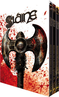 Moloch, Kronieken der invasies Sláine, eens de eerste koning van Ierland en zijn groep jonge krijgers, moeten het volk beschermen tegen een nieuwe golf van kwaadaardige gewelddadigheid. De aanvoerder van de Molochs is een afzichtelijke Fomortiaanse krijgsheer die gedreven wordt door een perverse honger naar menselijk lijden. Samen met zijn krijgersvrouw Niamh moet Sláine de demonen terugdrijven of hij betaalt een prijs die te verschrikkelijk is om te noemen ... Golamh Sláine verwerpt zijn troon om wraak te kunnen nemen voor de verkrachting en moord op zijn Niamh. Maar ondertussen wordt zijn volk bedreigd met een tweede invasie door Golamhs: verdreven Atlantiërs die gedwongen werden gastheer te zijn voor zeeduivels. Scota De barbaarse strijder en de vroegere Hoge Koning van Ierland Sláine zet de epische slag tegen de afschrikwekkende overzeese demonen voort. Hij vindt echter een bondgenoot uit onverwachte hoek. Samen moeten zij Tir Nan Og van de Fomoriaanse plaag bevrijden. Ze moeten elk middel gebruiken dat hen ter beschikking staat, inclusief de hulp van de Godin van de Aarde zelf!