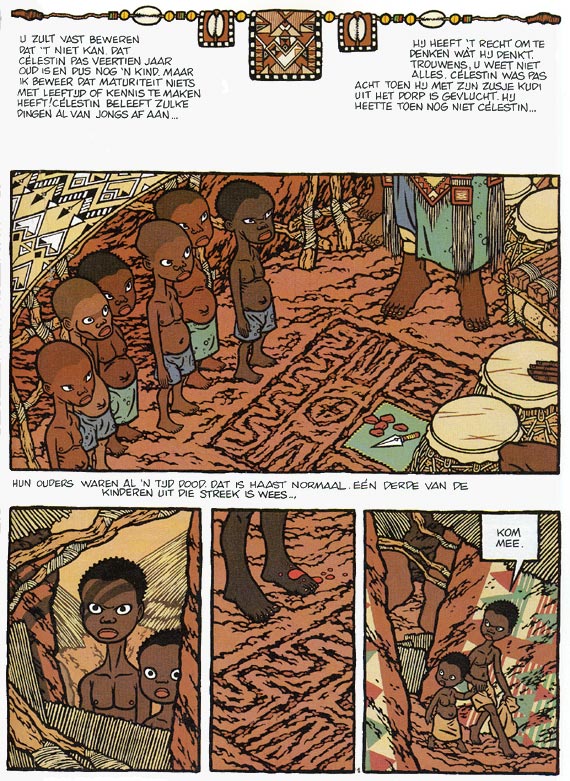 Célestin en Leila. Twee kinderen ... maar rijpe kinderen. De eerste vlucht uit zijn geboortedorp in het hartje van Afrika. Hij wil naar Europa, dat enkel lijkt te bestaan uit dromen en magie. De tweede vlucht uit Europa, waar ze is geboren, naar Marokko, het land van haar grootouders. Op de plek waar ze elkaar ontmoeten - een ontmoeting die helemaal niet voor de hand lag - midden in de woestijn: een bar opgetrokken uit leem, een paar lege olievaten en een oude Fransman, die zit te vertellen.