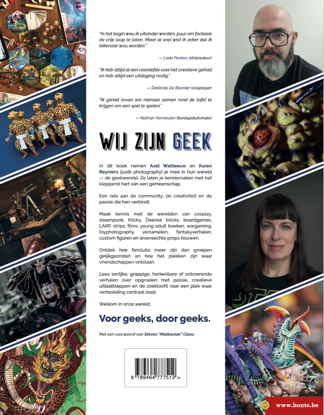 In dit boek nemen Axel Watteeuw en Karen Reyniers (justk photography) je mee in hun wereld de geekwereld. Ze laten je kennismaken met het kloppend hart van een gemeenschap.