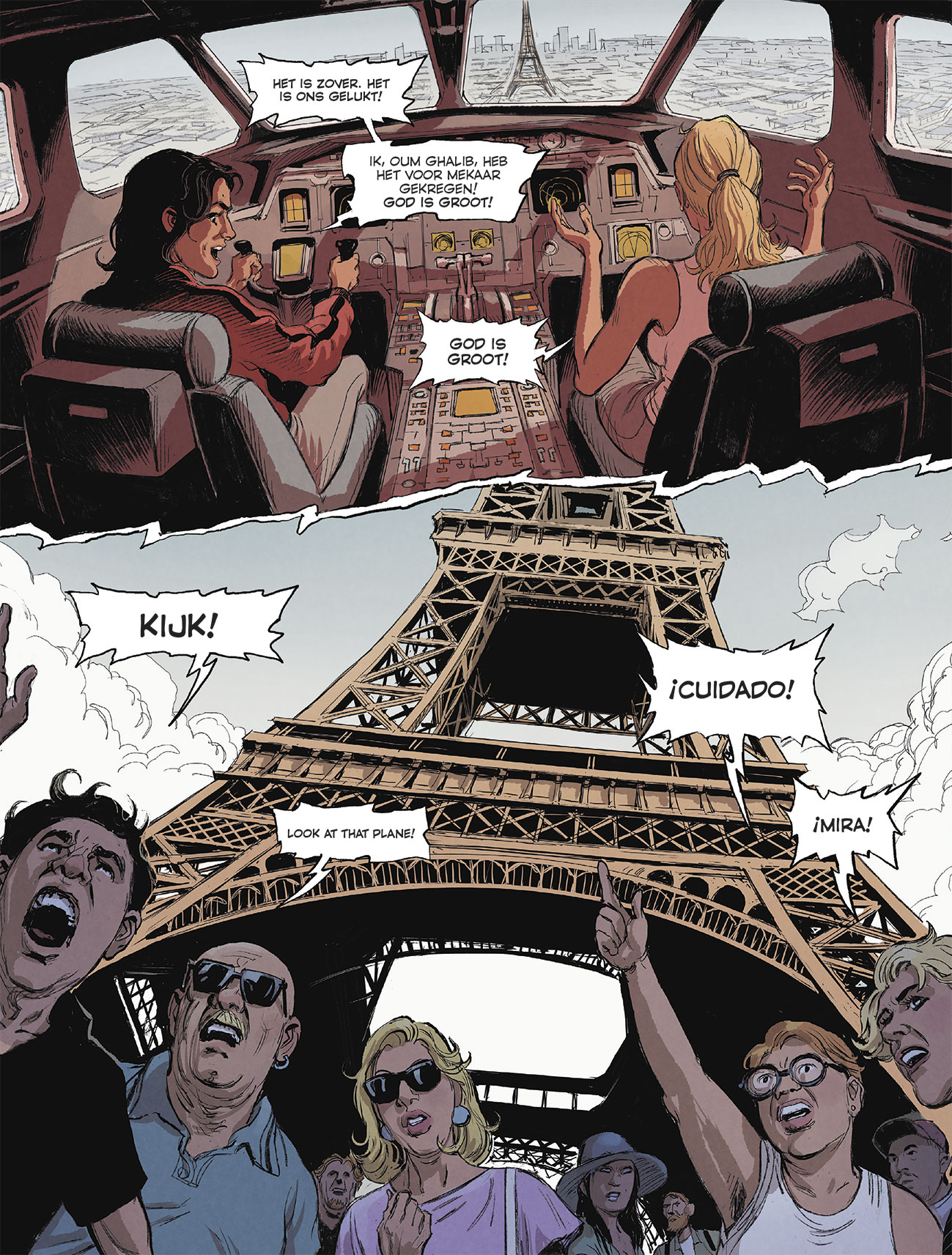 De antiterreurdiensten (DGSI - DGSE) lopen elkaar voor de voeten en de ego's van de respectievelijke bazen zijn groter dan het belang van onze veiligheid. We merken niets anders dan rivaliteit en persoonlijke vijandigheden. Waarom moeten er trouwens twee zulke diensten zijn? Actie voor de veiligheid van de bevolking komt soms (te) traag op gang. Maar als het Louvre een volgend doelwit blijkt te zijn en de leiders van de DGSI vernemen dat hun kinderen daar naartoe op schooluitstap gaan, kan er plots iets meer. Giuseppe Liotti (Rollenspel) tekent snel, maar wel met voldoende details. Hopelijk werken onze overheidsdiensten even snel als het nodig blijkt te zijn!