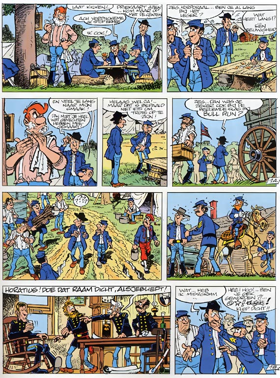 De reeks 'De Blauwbloezen' is een geslaagde mengeling van avontuur en humor. Cauvin gebruikt - zoals hij wel meer doet - historische anekdotes uit de Amerikaanse burgeroorlog om ons hilarische verhalen te vertellen over de perikelen in het leger, waar de hoogste officieren niet per se de slimste zijn... Willy Lambil heeft zich uitstekend gedocumenteerd en maakt van zijn pagina's heldere, intelligente kunstwerkjes. Het resultaat is amusement op hoog niveau, dat door een nog steeds groeiend publiek wordt gewaardeerd.