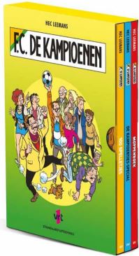 Verschijnt 7 november 2023 In deze cadeaudoos vind je 3 boeken en een verjaardagskalender van de allerleukste voetbalploeg van ’t land. Breng de 100 spelletjes tot een goed einde en laat zien dat je niet zo’n kieken bent als Mark. Ga terug in de tijd en herbeleef de geweldige jeugd van onze vrienden in de Kampioentjesspecial. Die bevat 3 stripverhalen en leuke spelletjes. Rol over de grond van het lachen met het moppenboek van de Kampioenen. Vergeet nooit meer een verjaardag met de megagrote verjaardagskalender van F.C. De Kampioenen. Op de achterkant vind je een gigagrote poster terug.