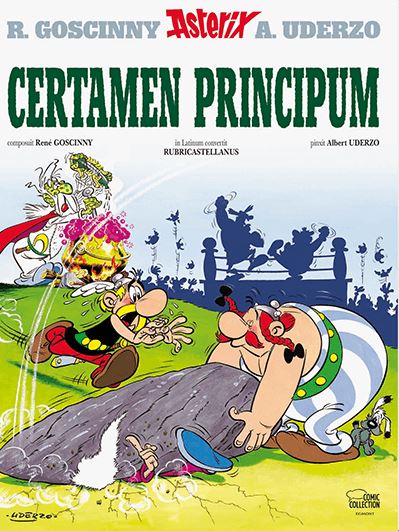 Latijnse versie Een strijd tussen de stamhoofden is voor Heroix een uitstekende gelegenheid om eindelijk de hoofdrol te spelen! En zoals je je kunt voorstellen heeft hij deze kans niet voorbij laten gaan. In het weekblad Pilote gaf hij een persconferentie in de stijl van de grote communiceerder Charles de Gaulle om een avontuur aan te kondigen dat eindelijk beantwoordde aan zijn ambitie. Sindsdien wordt ten onrechte beweerd dat Asterix een product zou zijn van het gaullisme. Maar in feite schepten Goscinny en Uderzo er alleen plezier in om de persconferenties van Generaal de Gaulle te karikaturiseren. That's all folks! De geniale inval om met een klap van een menhir geheugenverlies te veroorzaken, is een klassieke grap geworden. Puur leesplezier.