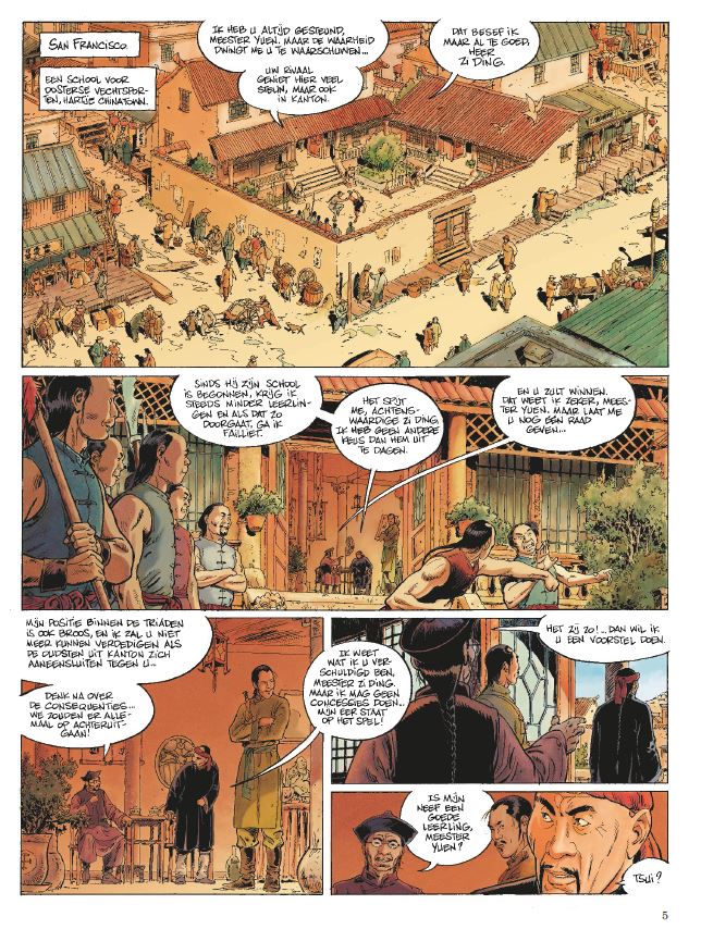 Deze symbiose tussen western en oosterse vechtsporten noemen we best 'eastern'. Tekenaar Taduc schotelt ons de weidsheid van de prachtige natuur voor. Californië is de 'Gum Shan' (Berg van Goud). Je hoeft er het goud maar op te rapen, een waar paradijs. Maar allereerst dienen deze avonturiers hun ticket al terug te betalen. Vele Chinezen werken aan de 'ijzeren rivier'. Op het beroep van 'mandmannen' kan je moeilijk jaloers zijn. Nu weten we tenminste wel wat een 'Bonanza' betekent. De uitsluitingswet bewijst dat de Amerikanen niet fier moeten zijn op hun politieke verleden. Wat een overduidelijk racisme!