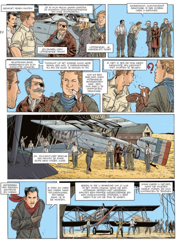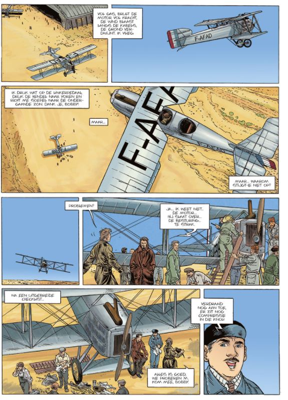 1918, de wapenstilstand. Ernest de Galardon, een zakenman, richtte een luchtpostbedrijf op om Frankrijk te verbinden met het Afrikaanse continent. Hij huurde verschillende voormalige piloten van de grote oorlog, azen. Frans, Belgisch en zelfs Duits! Helaas zinkt een van de beste, Adrien Delamare, in alcohol om de gruwelen van het conflict te vergeten. Is een fles in de lucht niet zoals een fles in de zee? Adrien Delamare herleeft vaak in zijn nachtmerriesafleveringen van de luchtmoordpartijen van de 'grote oorlog'. Trouwens, zou hij geen geschil hebben met zijn beste vriend en piloot, Robert 'Boby' Billaret? Ernest de Galardon vertrouwde hen de lijn Casablanca-Dakar toe. Maar zij zijn niet de enige, Latécoère had hetzelfde idee ... Een serieuze concurrent die moet worden uitgeschakeld. En de Galardon kijkt niet naar de middelen.