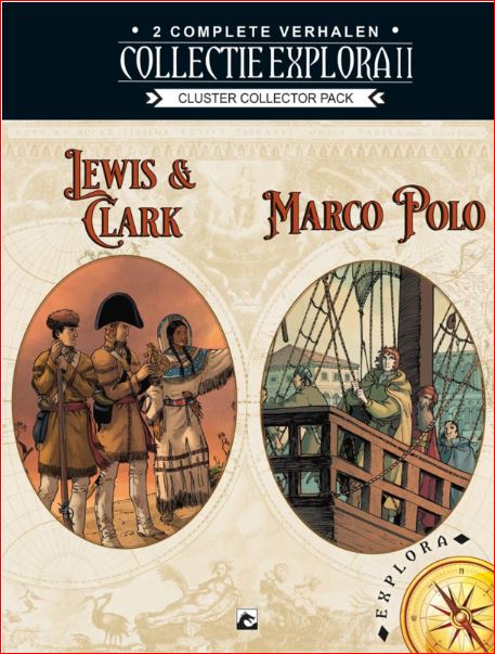 Collector pack met daarin Collectie Explora Collector Pack II Lewis & Clark Tekst: Philippe Thirault Tekeningen: Sandro Marco Polo 1 & 2 Tekst: Didier Convard Tekeningen: Éric Adam & Fabio Bono