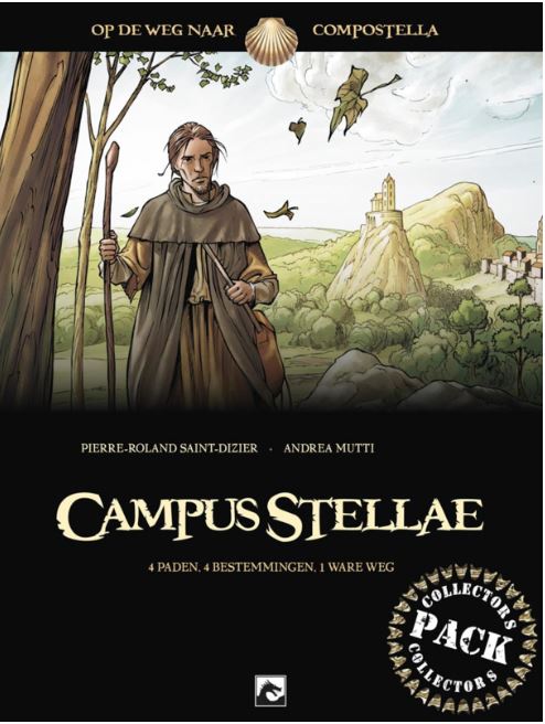 Campus Stellae 1t/m 4 compleet! De weg naar Compostella Schrijver: Pierre-Roland, Saint-Dizier Tekenaar: Andrea Mutti Softcover Een verhaal in vier delen 4 x 48 blz. Met luxe sleeve Het jaar 1255. Tijdens de Zevende Kruistocht ontdekt koning Lodewijk IX in Egypte een mysterieus standbeeld gewijd aan de godin Isis. In werkelijkheid is het maar een klein deel van een vervloekte schat. Twintig jaar later vormt de jonge herder Aubrac op de mythische weg naar Compostela een bedreiging voor hen die deze geheim willen houden ... Campus Stellae neemt je mee op de weg naar een van de belangrijkste bedevaartsoorden in het Christendom, met een omweg langs Rome en Jeruzalem!