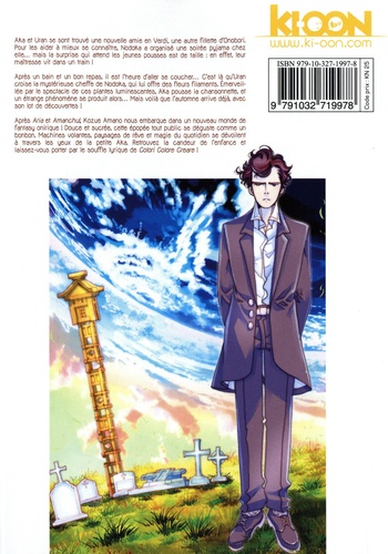 Après la Venise d' Aria et la mer d' Amanchu ! , explorez le village perché imaginé par Kozue Amano ! Aka et Uran se sont trouvé une nouvelle amie en Verdi, une autre fillette d'Onobori. Pour les aider à mieux se connaître, Nodoka a organisé une soirée pyjama chez elle... mais la surprise qui attend les jeunes pousses est de taille : en effet, leur maîtresse vit dans un train ! Après un bain et un bon repas, il est l'heure d'aller se coucher... C'est là qu'Uran croise la mystérieuse cheffe de Nodoka, qui lui offre des fleurs filaments. Emerveillée par le spectacle de ces plantes luminescentes, Aka pousse la chansonnette, et un étrange phénomène se produit alors... Mais voilà que l'automne arrive déjà, avec son lot de découvertes ! Après Aria et Amanchu ! , Kozue Amano nous embarque dans un nouveau monde de fantasy onirique ! Douce et sucrée, cette épopée tout public se déguste comme un bonbon. Machines volantes, paysages de rêve et magie du quotidien se dévoilent à travers les yeux de la petite Aka. Retrouvez la candeur de l'enfance et laissez-vous porter par le souffle lyrique de Colori Colore Creare !