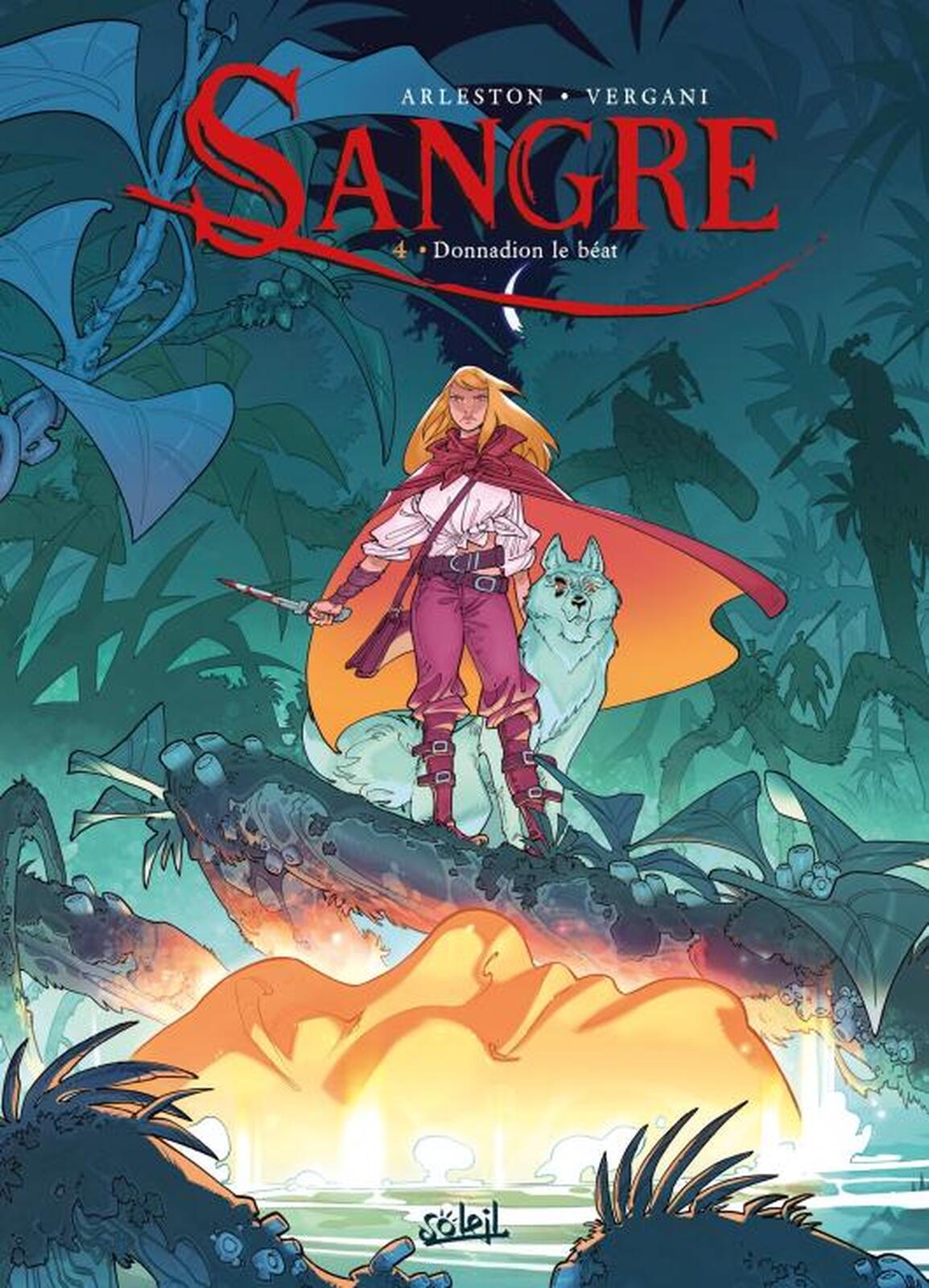 Beschrijving: In het vierde deel van de reeks Sangre, getiteld "Donnadion de Zalige", gaat Sangre verder met haar zoektocht naar wraak. Dit deel markeert een verandering in de creatieve ploeg, waarbij Stefano Vergani de tekening overneemt van Adrien Floch, die momenteel aan een eigen strip werkt. Ook de inkleuring is vernieuwd met Gloria Vezzaro in plaats van Claude Guth.