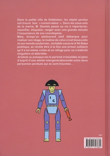 Dans la petite ville de Dobbiston, les objets perdus ont trouvé leur "conservateur". Dans les sous-sols de la mairie, M. Daniels passe sa vie à répertorier, classifier, étiqueter, ranger avec une grande minutie l'insouciance de ses concitoyens. Mais, lorsqu'un adolescent oisif débarque pour réaliser son stage, la routine de celui-ci est bousculée et son monde souterrain, véritable caverne d'Ali Baba poétique, se révèle être à la fois une prison solitaire qu'il a lui-même créée et un refuge pour sa créativité singulière et débridée. Aristote ou presque est le portrait irrésistible et plein d'esprit d'une amitié intergénérationnelle entre deux personnes perdues qui se sont trouvées...