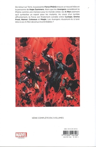 De retour sur Terre, la puissante Force Phénix trouve un nouvel hôte en la personne de Hope Summers. Alors que les Avengers considèrent le Phénix comme une menace pour le monde entier, les X-Men estiment qu'il symbolise un espoir pour les mutants. Au cours d'un terrible affrontement, la Force est finalement scindée entre Cyclope, Emma Frost, Namor, Colossus et Magie. Les Avengers réussiront-ils à tenir tète à ces X-Men devenus incontrôlables ?