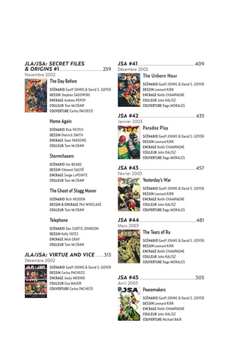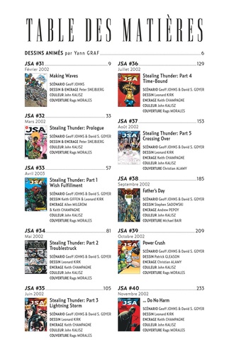 Le duo dynamique réunissant Geoff JOHNS, nouvellement arrivé chez DC, et David S. GOYER continue de réinventer les personnages historiques de la JSA. En proposant cette transition si naturelle entre l'arrière-ban des super-héros et sa nouvelle garde, les deux auteurs étaient loin de se douter qu'ils étaient en train d'écrire une nouvelle page de lettres de noblesse des héros de l' âge d'Or de DC Comics et celles de leurs héritiers.