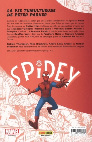 Comme si l'adolescence n'était pas une période suffisamment compliquée, Peter est pris dans un tourbillon d'aventures toutes plus folles les unes que les autres. Sous le costume de Spider-Man, il affronte en effet de redoutables ennemis tels que le Docteur Octopus, l'Homme Sable, le Vautour, Electro, Kraven, le Scorpion et même... le Docteur Fatalis ! Mais le jeune héros est-il prêt à faire face au Bouffon Vert ? Bien que la Panthère Noire et Captain America viennent lui prêter main-forte, tout se complique quand les Sinister Six passent à l'action... Robbie Thompson, Nick Bradshaw, André Lima Araújo et Nathan Stockman nous dévoilent la vie, les amours et les conflits du Spider-Man des origines.