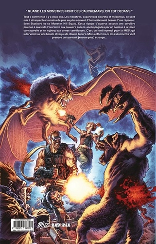 "QUAND LES MONSTRES FONT DES CAUCHEMARS, ON EST DEDANS." Tout a commencé il y a deux ans. Les monstres, auparavant discrets et méconnus, se sont mis à attaquer les humains de plus en plus souvent. L'humanité devait trouver une réponse Joan Steckard et sa Monster Kill Squad. Cette équipe d'experts associe païenne à sa rivale, l'exorciste aux pouvoirs sacrés, accompagnées par un colosse à la force surnaturelle et un cyborg aux armes terrifiantes. C'est un lundi normal pour la MKS, qui intervient sur une banale attaque de clowns tueurs. Mais cette fois-ci, les évènements vont prendre un tournant (encore plus) étrange...
