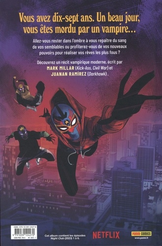 Lorsqu'un adolescent de 17 ans devient un vampire que décide-t-il de faire ? Utiliser ses nouveaux pouvoirs pour devenir un super-héros et proposer son don à ses meilleurs amis ! Mais ce n'est pas si simple quand on pactise avec les créatures de la nuit... Mark Millar (Civil War, Old Man Logan) trouve ici un nouveau concept survitaminé qui renouvele à la fois le genre super-héroïque et le mythe du vampire. Voici le premier volume d'une série prévue en trois tomes et qui sera bientôt adaptée sur Netflix.