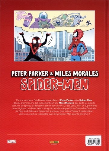 C'est la journée "Fais Bosser ton Acolyte" ! Peter Parker, alias Spider-Man, décide d'emmener à cet évènement son ami Miles Morales, qui porte lui aussi le costume de Spidey. L'adolescent est un peu vexé car, à ses yeux, il est un super-héros aussi légitime que Peter. Alors, lorsqu'un incident se produit au Salon des Criminels de New York, Miles est déterminé à prouver qu'il est un Tisseur à part entière. Voici une aventure irrésistible avec deux Spider-Men pour le prix d'un !