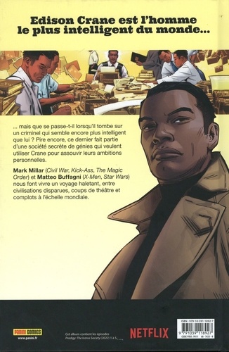 Edison Crane est l'homme le plus intelligent de la planète et la huitième fortune du monde. Enfin, c'est ce qu'il croyait jusqu'à ce qu'il découvre l'existence de l'Icarus Society. C'est le début d'une course contre les esprits les plus brillants qui existent. En jeu ? La découverte d'une civilisation perdue, les secrets qu'elle renferme et le destin du monde entier ! Avec Matteo Buffagni (Daredevil, X-Men), le scénariste star Mark Millar (Old Man Logan, Jupiter's Legacy) signe la suite de son Prodigy de 2019 (co-créé avec Rafael Albuquerque). Comme il est prévu avec toutes ses oeuvres créées depuis qu'il est chez Netflix, Prodigy devrait être adaptée par la plateforme.