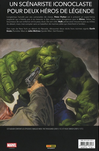Il fut un temps où Peter Parker était harcelé par certains de ses camarades de classe. Aujourd'hui, il est devenu un super-héros respecté qui n'hésite pas à se mesurer à des vilains aussi dangereux que le Rhino. Mais les tortionnaires de son enfance ont eux aussi la peau dure. De son côté, Hulk pense avoir trouvé la paix au milieu du désert, mais c'est sans compter sur un bataillon de marines zélés venus l'arrêter... Voici un album un peu atypique qui célèbre un tandem artistique peu habitué aux super-héros "classiques". En effet, on se souvient plutôt de Garth Ennis et John McCrea pour leur collaboration sur Hitman ou Dicks, et on sait qu'Ennis s'intéresse habituellement aux antihéros de l'univers Marvel, comme le Punisher et Nick Fury. Ces deux mini-séries datant de 2001, mettant en scène Spider-Man et Hulk, étonneront donc les fans de l'univers Marvel !