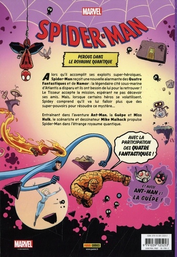 Alors qu'il défend les innocents comme à son habitude, Spider-Man est interrompu par Namor et les Quatre Fantastiques. Il se trouve qu'Atlantis, la cité sous-marine du Prince des Mers, a disparu, et les héros ont besoin de Spidey pour la retrouver. Une mission qui va vite basculer dans le Royaume Quantique ! Cette aventure tous publics de Spider-Man (et des Fantastiques ! ) emmène le lecteur dans un monde où plus aucune règle n'est respectée, et en particulier celle de la gravité. Il faudra tourner et retourner plusieurs fois son album entre ses mains pour suivre les pérégrinations des héros ! Heureusement, Miss Hulk est là pour aider les lecteurs !