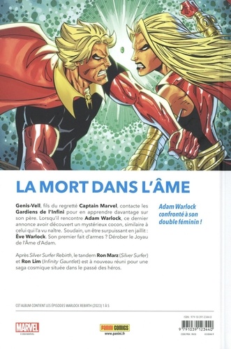 Depuis sa création, Adam Warlock est un héros cosmique protégeant l'univers de menaces telles que Thanos ou le Magus. Mais que se passerait-il si une nouvelle version plus forte, plus rapide et plus intelligente du Warlock voyait le jour ? Quand cet être, prénommé Eve, décide de dérober la Gemme d'Adam, Gamora, Pip le Troll et Genis-Vell décident d'appeler le Dr Strange à la rescousse ! Aidés par le Sorcier Suprême, pourront-ils aider Adam à revenir du monde dont il est prisonnier ? Ou cette action signera-t-elle l'avènement d'Eve en tant que nouvelle Warlock de la galaxie ? Les créateurs Ron Marz et Ron Lim sont les auteurs d'épisodes très appréciés de la série Silver Surfer au début des années 90, lorsque Jim Starlin tissait la saga du Gant de l'Infini et ses suites. Après Silver Surfer : Renaissance, les deux Ron se retrouvent à nouveau pour raconter une aventure inédite, cette fois-ci centrée sur Adam Warlock, un personnage culte que les fans du MCU ont pu découvrir dans l'ultime volet des Gardiens de la Galaxie sorti en mai dernier.