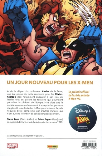 Après le départ du professeur Xavier de la Terre, une ère pleine de défis s'annonce pour les X-Men. Cyclope doit notamment s'adapter à son rôle de leader, tout en gérant les tensions qui pourraient perturber la cohésion de l'équipe. Mais alors que la société commence lentement à accepter les porteurs du gène X, les efforts des X-Men pour instaurer la paix risquent d'être compromis par d'autres mutants qui n'ont aucune intention de cohabiter pacifiquement. Steve Foxe (Dark X-Men) et Salva Espín (Deadpool) s'emparent de l'univers de la série culte des années 1990.