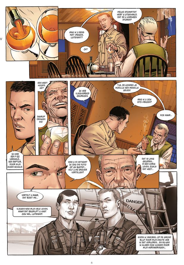 Met een extra A3 art-print Bomb Road is een driedelige reeks van Michel Koeniguer die we kennen van: ( Misty Mission, The Bridge, Berlijn wordt ons graf ) Michael Koeniguer kennen we van Misty Mission, Berlijn wordt ons graf en the Bridge. Over de pagina's keert de gepensioneerde kolonel terug naar de luchtoperaties die in zijn hoofd zijn gegrift. Op basis van een perfect gedocumenteerd scenario laat de auteur een deel van de psychologische ontwikkeling van de hoofdrolspelers achter om volledige aandacht te schenken aan de vliegmachines die dan ook belangrijk zijn in deze reeks. Als de plot slechts enkele verrassingen bevat, terwijl militair jargon sommige mensen die niet vertrouwd zijn met dit genre, kan ontmoedigen, zouden de vele actiescènes liefhebbers van oorlogsverhalen moeten verrassen. Tussen luchtaanvallen, napalmbommen, zware artillerie en bombardementen of verkenningsmissies heeft de lezer geen tijd om zich te vervelen. Met een zeer realistische stijl stelt Michel Koeniguer een nauwgezet werk voor op het vlak van luchtvaartscènes en aeronautica. De tekeningen van de vliegtuigen (F-4 Phantom) zijn prachtig en gedetailleerd maar de karakters lijken soms moeilijk van elkaar te onderscheiden. Inhoud: Kolonel Bradley “Redneck” Towsend, 68 jaar oud, piloot bij de Marines, leeft teruggetrokken in zijn chalet in de Rocky Mountains. Door zijn ziekte vult hij zijn dagen met tv-nieuwsuitzendingen kijken, bezorgd zijn om zijn zoon die Apache-helikopterpiloot is in Irak. Als er zich een “kazernehulpje” aanbiedt, een jonge piloot die werd gestraft omdat hij in zijn overmoed een splinternieuwe F-22 in de prak heeft gevlogen, is dat voor de oude piloot een gelegenheid om herinneringen op te halen aan zijn tijd in het Verre Oosten, in Da Nang...