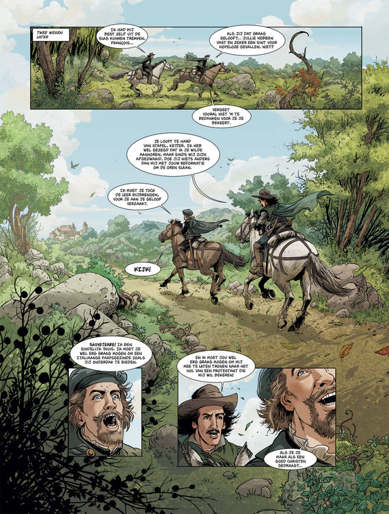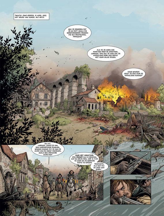 Parijs, 25 augustus 1572, 's daags na de Bloedbruiloft. Niettegenstaande de bevelen van de koning gaat het moorden gewoon door. Elie doolt rond in de van bloed druipende stad, verscheurd tussen zijn hoop zijn zus terug te zien en zijn angst gedood te worden door zijn bloedeigen, fanatieke broer. Waar komt die band tussen Scipio, een intrigant, en de familie van Sauveterre vandaan? Stamt die misschien uit het verleden? In dit derde en laatste deel van de serie wordt dit vraagstuk puzzel opgelost. De tumultueuze, Franse geschiedenis en het wedervaren van de Sauveterres, de geheimen van hun familie, zijn innig met elkaar verbonden. Historische weergave van de Godsdienstoorlogen die Frankrijk verscheuren in de 16de eeuw, van de hand van meester Stalner!