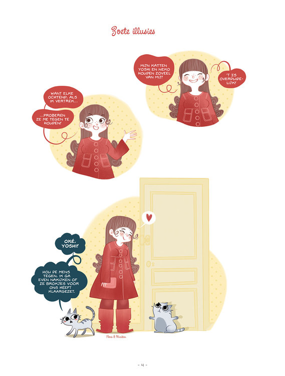 Leven met twee katten is niet moeilijk: doe gewoon wat zij willen! Lucie is een doodgewone Parisienne. Zoals duizenden vrouwen van haar leeftijd, heeft ze een klein appartement, veel vrienden, een baan in een kantoor, ... Kortom, een gewoon meisje, als ze geen serieus probleem had: Lucie is een kattenmeisje! Ze heeft er twee en ze doet er alles aan om hun leven zo aangenaam mogelijk te maken. Van hun kant gebruiken Neko en Yoshi al hun kattenkennis om het bestaan van hun mens overhoop te zetten ... Een jaar in het leven van een kattenliefhebster. Herkenbare humor voor mensen die een kat in huis hebben!