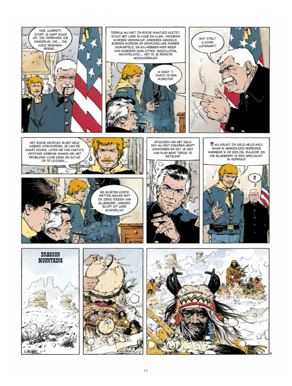 Het drieluik Marshal Blueberry is de vrucht van de ontmoeting van twee legendes uit de stripwereld. Op scenario van Jean Giraud kan William Vance zijn liefde voor de western botvieren in twee vlammende verhalen. Michel Rouge, de meesterleerling van Moebius, maakt het epische avontuur met brio af. Een album dat de toon aangeeft in het genre van de grimmige western. Het legendarische drieluik van Jean Giraud eindelijk ook integraal gebundeld. Eerste twee verhalen getekend door William Vance (XIII, Ramiro, Bruno Brazil, Bruce J. Hawker), derde verhaal getekend door Michel Rouge (Comanche, Simon de Samaritaan).