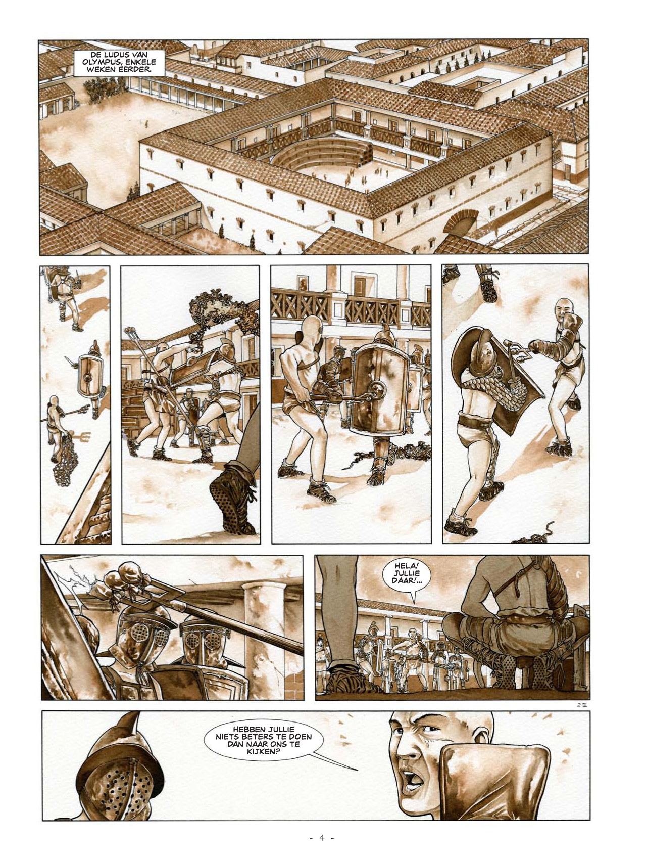 Vandaag is de grote dag voor Vitalis, na maanden van pijnlijke lessen ver weg van zijn vrouw en pasgeboren zoon zal hij eindelijk het zand van het amfitheater van Arelate oplopen. Atticus op zijn beurt moet zijn aandacht verdelen tussen het opleiden van zijn strijders, de escapades van Vitalis en de voorbereiding van het laatste gevecht die hem zijn vrijheid terug kunnen geven. Voor beiden betekenen deze inaugurele spellen een wending van hun lot ... Voorgoed!