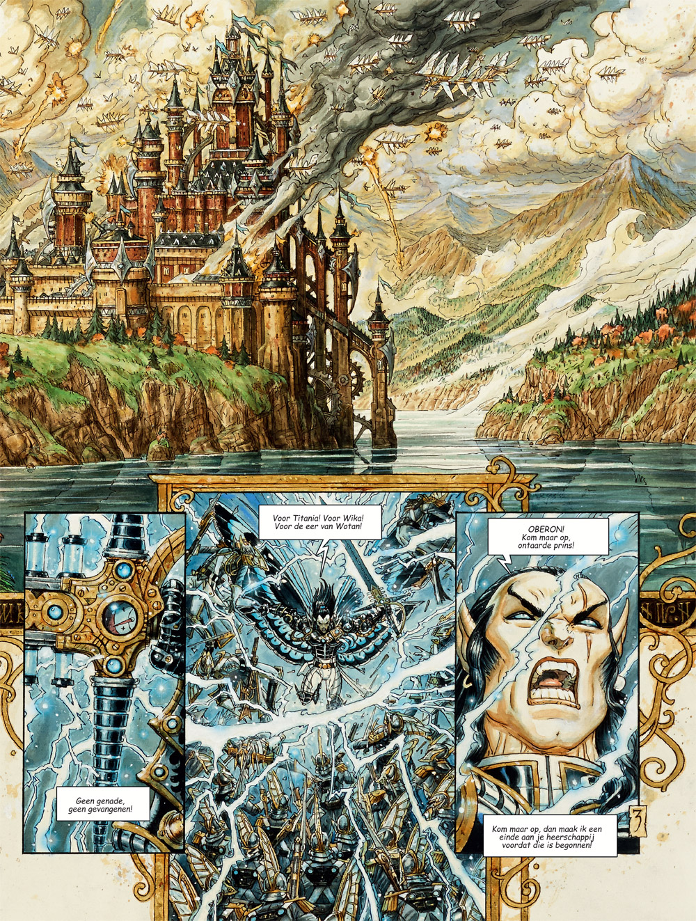 Er was eens een prins met een gebroken hart die woonde in het Elfenrijk. Omdat hij het huwelijk van Titania, de liefde van zijn leven, met graaf Claymore Grimm niet kon verdragen, heeft prins Oberon zijn troepen Kasteel Grimm laten aanvallen, de graaf gedood en de Hoge Fee die hij zo liefhad verwoest. Beschermd door wapenmeester Haggis Cornelly is de kleine Wika Grimm ontsnapt aan het bloedbad van haar familie. Haar vleugels zijn haar afgenomen, zodat de onschuldige baby niet opgemerkt wordt en in het geheim kan opgroeien. Maar zelfs verminkt blijft een fee een fee: het kan niet anders of ze zal overrompeld worden door haar krachten. Wie zal het machtigst zijn? De razernij van Oberon of de woede van Wika? Olivier Ledroit, bekend in de wereld van illustraties en van fantasy-strips, verzorgt met zijn barokke en gedetailleerde tekenstijl een geweldige hervertelling van klassieke fabels in een feeëriek steampunk-universum, op het eerste stripscenario van Thomas Day!