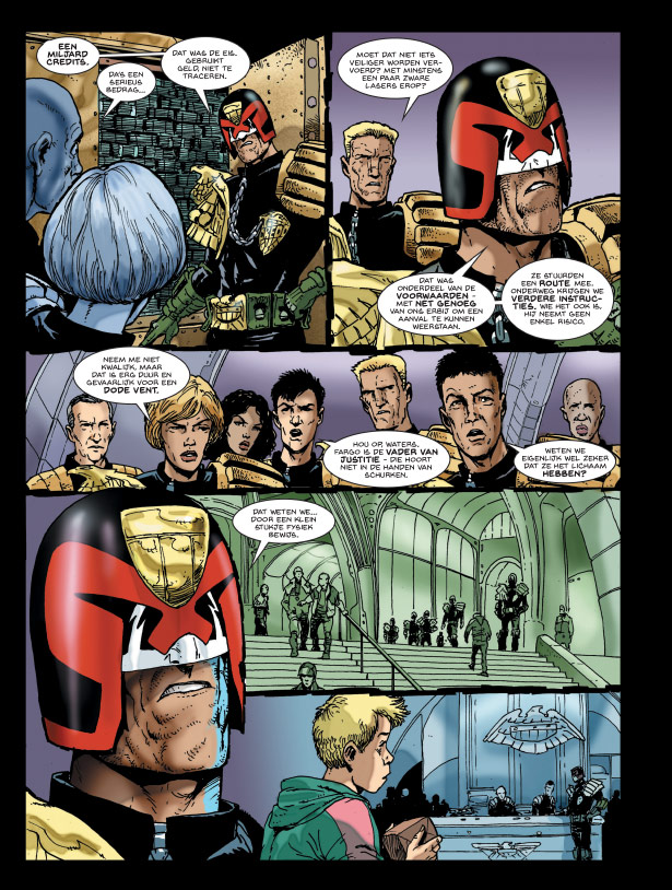 Een ongewoon pakket wordt afgeleverd bij de Grote Hal der Gerechtigheid. Het leidt tot een missie onder leiding van Judge Dredd naar de Vervloekte Aarde, in het donkerste verleden van de geschiedenis van de Judges en Mega-Stad-Eén. In dit bijzondere Dredd-album wordt geschiedenis gemaakt en geschreven. Iemand eist losgeld voor de afgescheurde hand van opperrechter Fargo, de allereerste hoofdrechter. Dredd en zijn team ondernemen een expeditie om te proberen het lichaam van de Vader aller Rechters te herstellen. Dat wordt niet zomaar een reis door Amerika, het is een reis door het verleden, en een zoektocht naar de oorsprong van Judges en het ontstaan van MegaStad Eén. Hardcore actie rond de beroemdste strijdende rechter aller tijden. Uit de koker van John Wagner & Carlos Ezquerra.