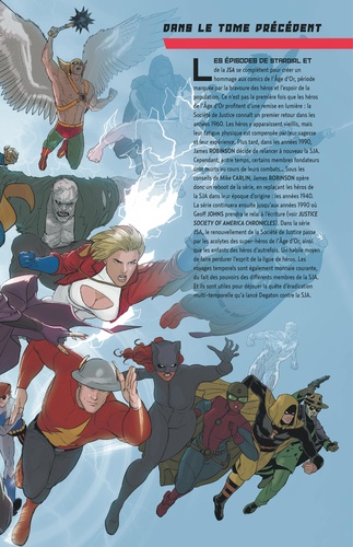 A la suite des évènements vécus par la SJA, Jay et Joan Garrick retrouvent Judy, leur fille disparue depuis longtemps. Alors qu'elle s'était volatilisé hors de la dimension temporelle, son retour dans le monde présent soulève de nombreux enjeux pour la famille. Réunis, ils chevauchent à nouveau la foudre, mais Jay parviendra-t-il à suivre la jeune adolescente dans ses trajectoires sinueuses à rattraper le temps perdu ? Dawn of JSA s'attarde dans ce deuxième tome sur la destinée de Jay et Judy Garrick. L'auteur Jeremy Adams (Supernatural, Teen Titans go ! ) voyage dans le temps pour s'emparer de l'histoire familial des Flash aux côté du dessinateur Diego Olortegui (Infinity Wars). Avec l'arc, Justice League Society, Geoff Johns poursuit l'intrigue qu'il a lancé en 2016 dans le pages du DC Univers Rebirth, puis de DC Univers Rebirth : Le badge, poursuivie dans Doomsday Clock et, plus récemment, dans Flashpoint Beyond.