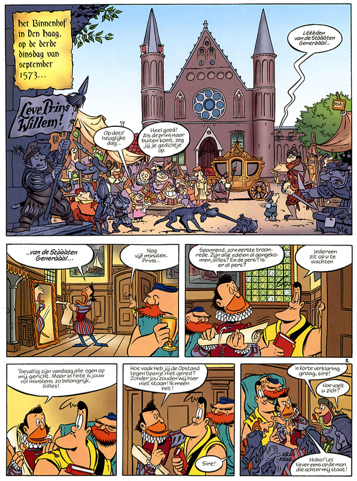 Avonturen aan de vooravond van onze Gouden Eeuw. Tijdens de Tachtigjarige Oorlog sluit de voormalige struikrover Gilles zich aan bij de Geuzen. Deze vrijheidsstrijders verzetten zich onder leiding van Willem van Oranje tegen de Spaanse bezetters en hun wrede aanvoerder, de hertog van Alva. Met zijn strijdmakkers, de machtige Leo en de onmachtige admiraal Lumeij, brengt Gilles de vrijheid steeds dichterbij. Het gaat niet goed met Willem van Oranje. Zijn vloot is door de Spanjaarden vernietigd en ook de roddelpers laat geen spaan van hem heel. Tot overmaat van ramp staan de Spanjaarden op het punt om de belangrijkste havensteden in de Zuiderzee te veroveren, hetgeen de genadeklap zou betekenen voor de jonge republiek. Uitvinder Cornelis Drebbel weet raad. Hij stuurt onze drie helden honderd jaar de toekomst in, waar zij Michiel de Ruyter ontmoeten op zijn vlaggenschip De 7 Provinciën.