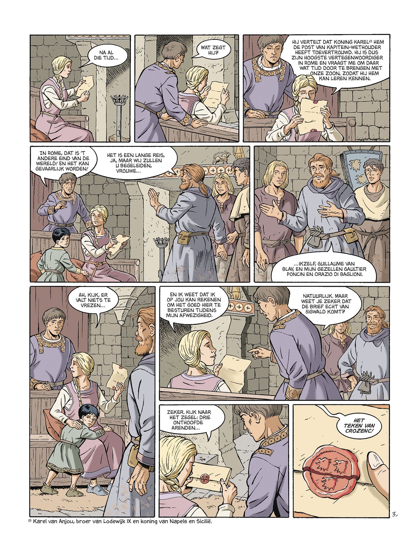 Slotdeel van deze reeks door Pierret. Juli 1280. Sigwald van Crozenc is gezant in Rome voor de koninkrijken Napels en Sicilië, en dus woordvoerder van koning Karel van Anjou bij de Heilige Stoel. Wanneer hij verneemt dat zijn vriend Abraham Aboulafia, een wijze jood die de kabbala volgt, tot de brandstapel is veroordeeld door de paus, gebruikt Sigwald zijn invloed om zijn gezel te redden. Maar zijn verzoek stuit op weerstand, en erger... de Heilige Vader wordt zo woest dat hij er ziek van wordt. Door de broze gezondheid van de paus gaat zijn opportunistische neef, Matteo Rubeo Orsini, dromen van een benoeming tot paus. Tezelfdertijd komen Simon de Brie, onderzoeker voor de canonisering van de overleden Lodewijk IX, Mahaut van Crozenc, zus van Sigwald, en haar zoon Hughes aan in Rome. Ze raken allemaal betrokken bij de duistere intriges in de hogere regionen en de onderwereld van de christelijke hoofdstad.