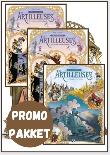 Gemiddelde score 4 / 5Met het verschijnen van dit derde deel kennen we eindelijk de ontknoping van dit originele drieluik. De artilleuses is niet zomaar een verhaal van een dievenbende, de drie leden zijn niet alleen maar sterke vrouwen, ze hebben ook speciale eigenschappen. Deze reeks is dan ook niet zomaar een avonturenverhaal over een dievenbende uit de belle époque in Parijs. Pierre Pevel goot een fantasielaagje over zijn verhaal dat door Etienne Willem in zijn herkenbare, wat ronde stijl naar een hoger niveau wordt getild. Etienne Willem kwam op onze radar door enkele antropomorfe dierenreeksen zoals “het zwaard van Ardennois” en “de vleugels van de aap” recenter scoorde hij ook al in het Nederlands als tekenaar van “het meisje van de wereldexpo”. In tegenstelling tot Ekhö, waar een complete fantasiewereld lijkt op een bestaande stad, leven mensen en fantasiewezens uit de Elderwereld vreedzaam samen. Zo zie je trollen als ober in een restaurant, of zie je eenhoorns in het park. Lady Remington, Miss Winchester en juffrouw Gatling passen dan ook perfect in dit universum: Lady Remington is niet alleen een Engelse aristocrate, ze is ook een tovenares. De wulpse Kathryn Winchester is Amerikaanse, ze is niet alleen de chauffeur en de scherpschutter van de groep, ze heeft ook een tatoeage van een salamander die zijn eigen leven leidt. Louison Gatling is een echte Parisienne , meer nog, ze is een stadsfee en kwijnt weg als ze te ver van de lichtstad is verwijdert. Haar specialiteit is explosieven en haar favoriete speeltje is Fifi, haar mitrailleur De artilleuses werden door de faun Christofaros ingehuurd om een bank te overvallen, in een van de opengebroken kluizen moesten ze voor hem een zegelring stelen. Die ring is echter het symbool van trouw van het elfenrijk aan de Elderwereld. Het verdwijnen van die ring zou dan ook een grote diplomatieke en politieke crisis veroorzaken tussen de mensenwereld en de Elderwereld. De overdracht van de ring aan Christofaros liep echter faliekant af. Een soort van steampunk-drone nam hen onder vuur, Christofaros werd neergeschoten en de artilleuses moesten onderduiken. Terwijl ze op zoek gaan hoe de vork nu eigenlijk aan de steel zit, worden de artilleuses niet alleen gezocht door de Franse politie maar ook door de Franse en Duitse geheime diensten. Etienne Willem mag zich dan ook regelmatig uitleven tijdens spectaculaire actiescenes. De ene keer is dat een achtervolging, de andere keer een indrukwekkend vuurgevecht. Pevel schotelt ons een leuke mix voor: een fantasierijk avontuur met een goede scheut actie, een snuifje bloot, een paar spectaculaire steampunk voertuigen en een machtige Duitse slechterik. Dit is een erg leuk drieluik geworden die de lezer een leuke, ontspannende leeservaring bezorgt.