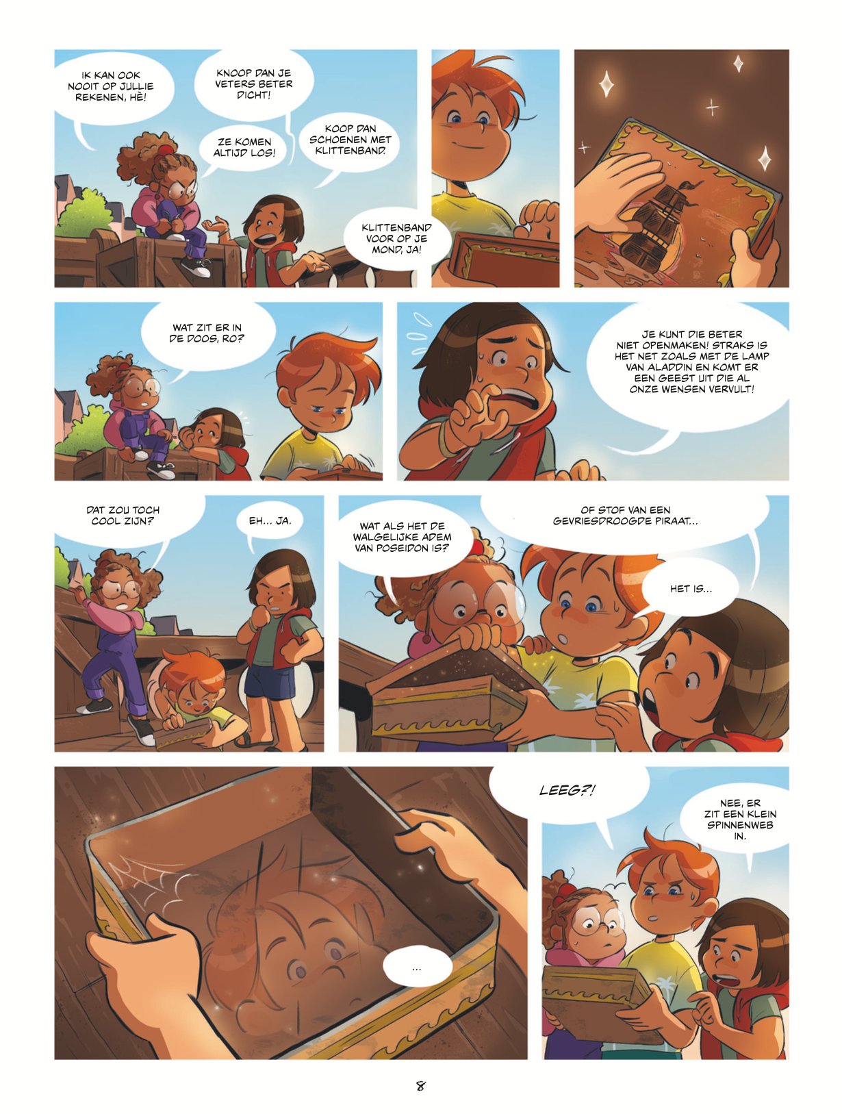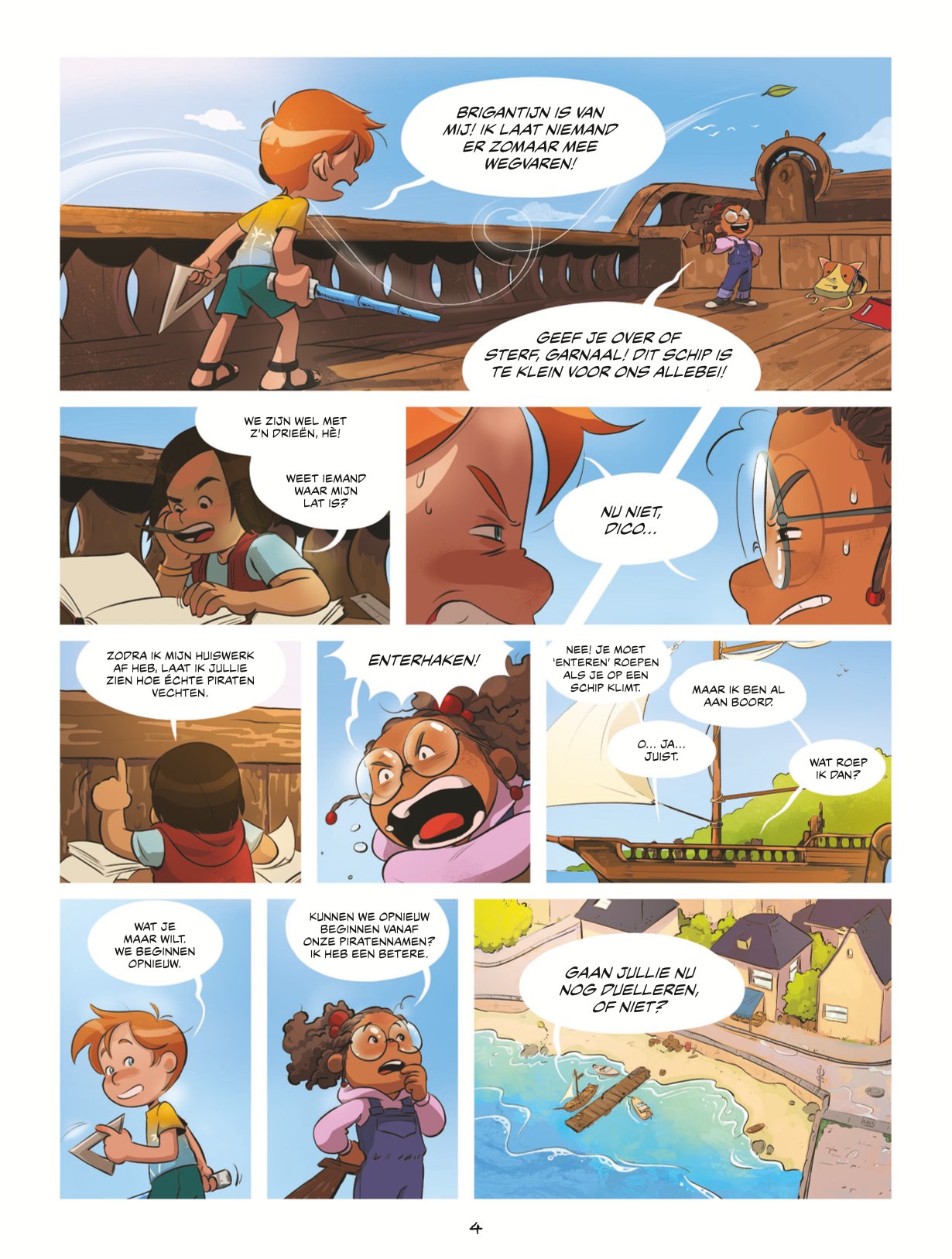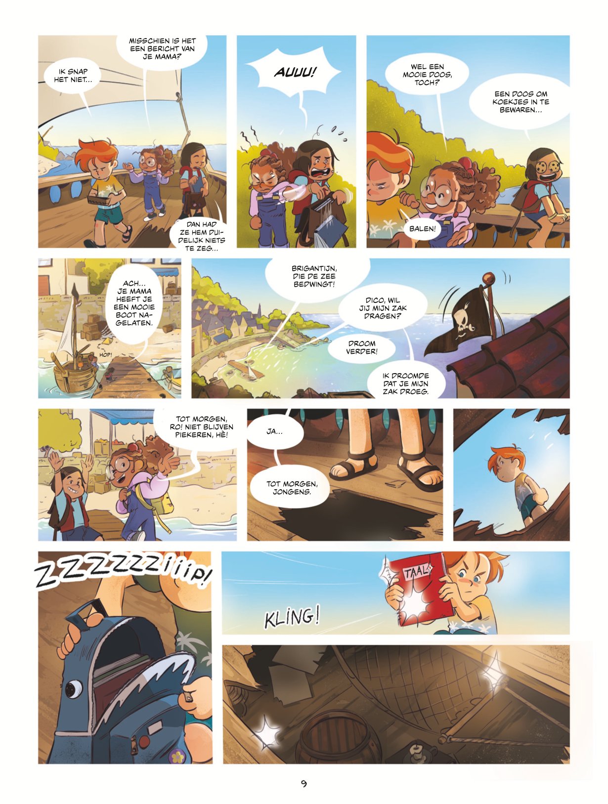 Een verhaal over piraten, reizen en ontsnapping, dat zijn de eerste ingrediënten van deze nieuwe jeugdserie van Dupuis. Aan het roer van deze creatie staan drie nieuwkomers in de negende kunst: Charlotte Cousquer voor de kleur, Pauline De La Provôté voor de tekeningen en Jean-Baptiste Saurel voor het scenario. Voor hun eerste verhaal hebben de auteurs gekozen voor een realistisch kader waarin hun held en zijn metgezellen spelen zoals elke vriendengroep. Nou ja, bijna dan. Het taalgebruik van de kinderen in de eerste pagina's verrast enigszins gezien hun leeftijd. Maar eenmaal over deze lichte verrassing heen, begint het avontuur volop met het plan dat het trio opzet, al snel vergezeld door de kleine en zijn zus Juliette, om de verkoop van de Brigantin te voorkomen. De plot is meteen boeiend, dankzij de vele vragen die oprijzen en een moderne grafische stijl met een dynamische lay-out.
