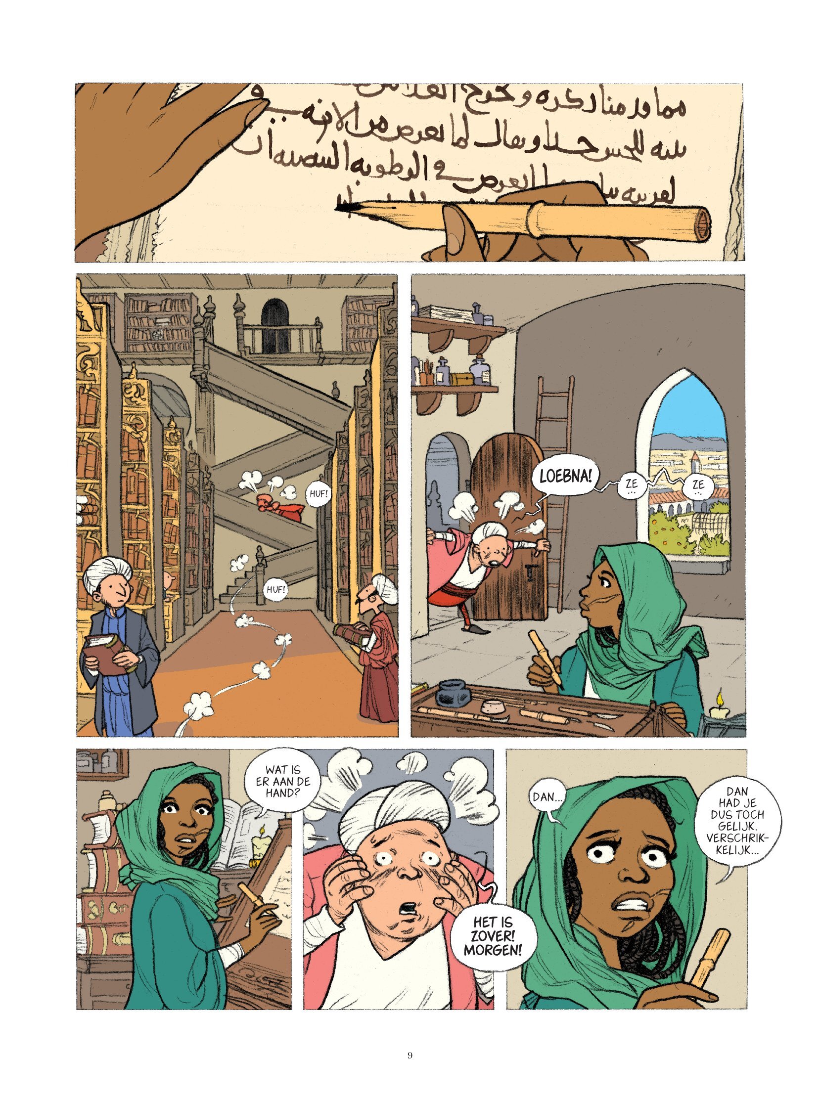 Cordoba moest de culturele hoofdstad van het Westen worden. Maar kalief Al-Hakam II overleed onverwacht en zijn zoon, Hisham, was nog maar elf. Van religieuze verstarring gesproken. De kalief van Cordoba heeft een bibliotheek bijeengespaard (400000 titels a.u.b.) waar wij, als stripliefhebber, alleen maar respect voor kunnen hebben. Grootvizier Muhammad Amir veroordeelt de boeken tot de brandstapel. Bijna een week lang zullen ze branden. "De heiligschennende geschriften worden verbrand. Ze staan tussen de gelovige en de boodschap van Allah". Eunuch Tarid en kopiiste Loebna, allebei hoger opgeleide slaven, gaan samen met eeuwige dief Marwan een aandoenlijke poging wagen om enkele honderden boeken te redden. Met de hulp van een koppige ezel is dit een risicovol plan.