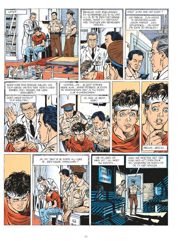 Laatste deel van deze mooie integrale reeks. Met een knap geïllustreerd dossier Van André-Paul Duchâteau, de scenarist van Rik Ringers, Chick Bill, Hans en Christian Denayer, de tekenaar van Wayne Shelton In de jaren 70-80 maakten ze samen ook de autoracestrip Alain Chevallier Nog drie laatste rondjes… Denayer en Duchâteau geven alles tot het einde. De scenarist laat zich inspireren door misdaadromans om deze zwanenzang te openen en dompelt onze helden onder in de geheimen van Hollywood, waar de brutaliteit van Brock dreigt te botsen met de verfijndheid van de omgeving. Maar de Brokkenmakers hebben lak aan de omgeving! Ze boren hun bolides erin, in 4e versnelling nog, liefst, tot groot jolijt van Christian Denayer… en de lezers! Dit 7e deel bundelt de volgende titels: Black out, Crossfire en Hollywood Double-Face. Zoals de andere delen is ook deze integraal voorzien van een uitgebreid en rijk geïllustreerd dossier. De Brokkenmakers Christiaen Denayer, °1945, Ixelles België, tekenaar van deze reeks kwam bij toeval bij uitgeverij Le Lombard terecht en mocht de decors, auto’s tekenen van Michel Vaillant. Dit omdat hij vooral tekeningen presenteerde van auto’s. En dit gedurende 8 jaar aan één stuk. Daarna volgde Tibet die hem hetzelfde werk verschafte. Via Tibet kwam hij in contact met AP Duchateau en startte zou Yalek, Alain Chevalier, de Brokkenmakers, …. In 1975 starte deze reeks in het tijdschrift Kuifje. In 1977 verscheen het eerste album en zette onmiddellijk de toon. Achtervolgingen, cascades, actie, auto’s , … kortom alles wat we in die tijd populair was op TV en Film gebied was in deze reeks aanwezig. Al en Brock, twee tegenpolen, de ene jong, afkomstig van een rijke familie ( en gelukkig maar voor alle brokken die ze maakten) en Brock de oude, “ bad cop ” die alles aan zijn laars lapte, nonchalant en vooral graag fast food at! Die combinatie zorgde tevens voor de nodige humor. Het hoofdthema van de reeks was een overvloed van cascades van auto’s, bussen, treinen, vrachtwagens, boten, helicopters, tanks,… en natuurlijk de nodige spanningen en avonturen die onze twee politie agenten steeds wisten tot een goed einde te brengen. Beiden gingen in 1994, na 21 albums op pensioen. Maar hier zijn ze terug en nog altijd even leuk om lezen. Eenvoudige verhalen die al je zorgen doen vergeten na een drukke werkdag. Voor velen een prachtige manier om terug deze nostalgie te herbeleven en voor anderen een manier om kennis te maken met een klassieker die nog altijd even fris en actueel is. De verhalen zijn gebundeld in deze 7 volumes die rijkelijk aangevuld zijn met dossiers extra’s. Bij deze reeks hoort een exclusieve stripweb ex-libris voor onze klanten die de reeks prachtig samenvat. - Beide hoofdpersonages en wat ze graag doen…. Brokkenmaken. Veel leesplezier. Van Duchâteau, de scenarist van Rik Ringers, Chick Bill, Hans en Denayer, de tekenaar van Wayne Shelton. In de jaren 70-80 maakten ze samen ook de autoracestrip Alain Chevallier.
