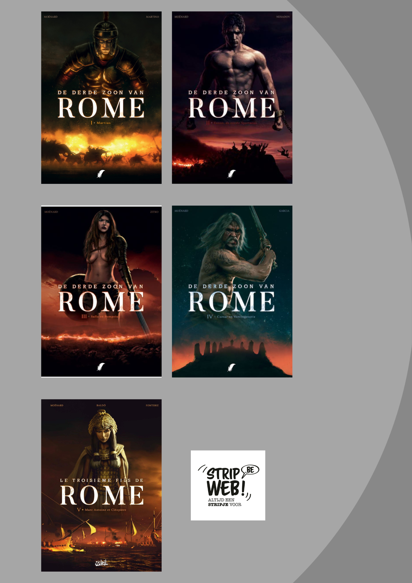 5 delen compleet Striptekenaar Garcia Manuel kennen we ook van o.a. volgende stripreeksen 1. Djenghis Khan 2. Het land van de Vampiers 3. Jesus Pilatus Stripscenarist Moënard laurent kennen we ook van het stripverhaal 1. Blues 46 Terwijl de Tiber zijn deel van de lijken draagt, worden in het ondiepe van Rome de meest verdorven bevrijdingen van Decimus Salvius Camillus gefêteerd. Het oude bouwwerk van de stad, een fervent voorstander van de komst van de derde zoon van Rome, krijgt eindelijk de kans om wraak te nemen op zijn vijanden. Ondertussen sluiten Pompeius en zijn legioenen de stadspoorten. Het bestaan van een derde kind, naast Romulus en Remus, werpt een ander licht op de geschiedenis van Rome!