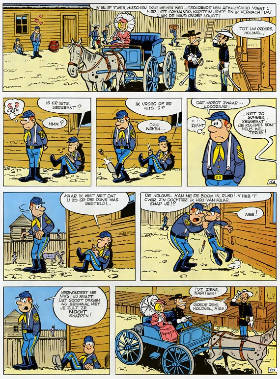 De reeks 'De Blauwbloezen' is een geslaagde mengeling van avontuur en humor. Cauvin gebruikt - zoals hij wel meer doet - historische anekdotes uit de Amerikaanse burgeroorlog om ons hilarische verhalen te vertellen over de perikelen in het leger, waar de hoogste officieren niet per se de slimste zijn... Willy Lambil heeft zich uitstekend gedocumenteerd en maakt van zijn pagina's heldere, intelligente kunstwerkjes. Het resultaat is amusement op hoog niveau, dat door een nog steeds groeiend publiek wordt gewaardeerd.