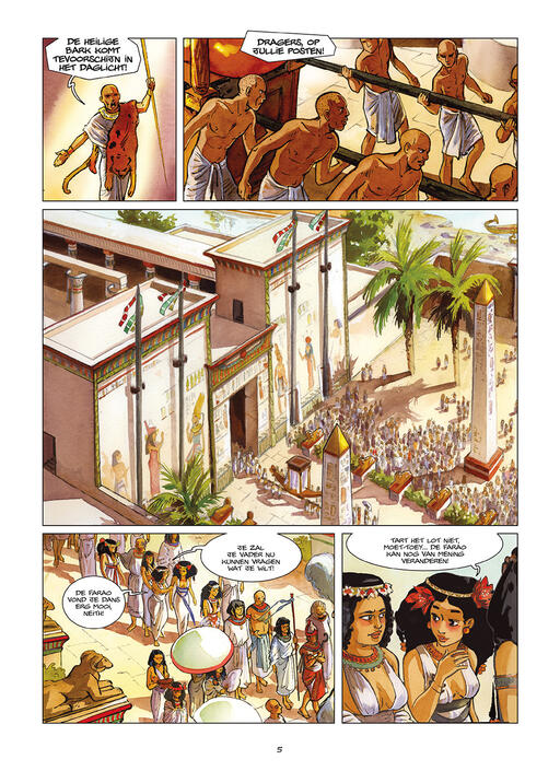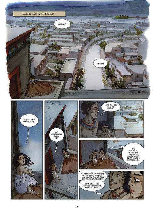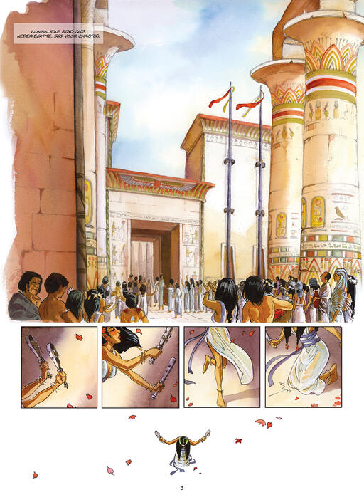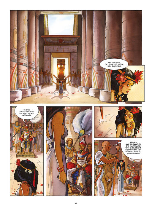 Start van een historisch tweeluik door de auteur van In het Land van Horus. Het slot verschijnt begin 2026. Oorspronkelijk verscheen deze reeks in het Frans bij Dargaud, bij wie Isabelle Dethan eerder dit jaar een dik (en onvertaald) album over Cleopatra publiceerde. In De Strokoning verweeft ze fictie met historische realiteit. Het ritueel van de strokoning, om een valse koning aan te stellen om hem als zondebok aan de goden te offeren, is niet door haar uitgevonden.