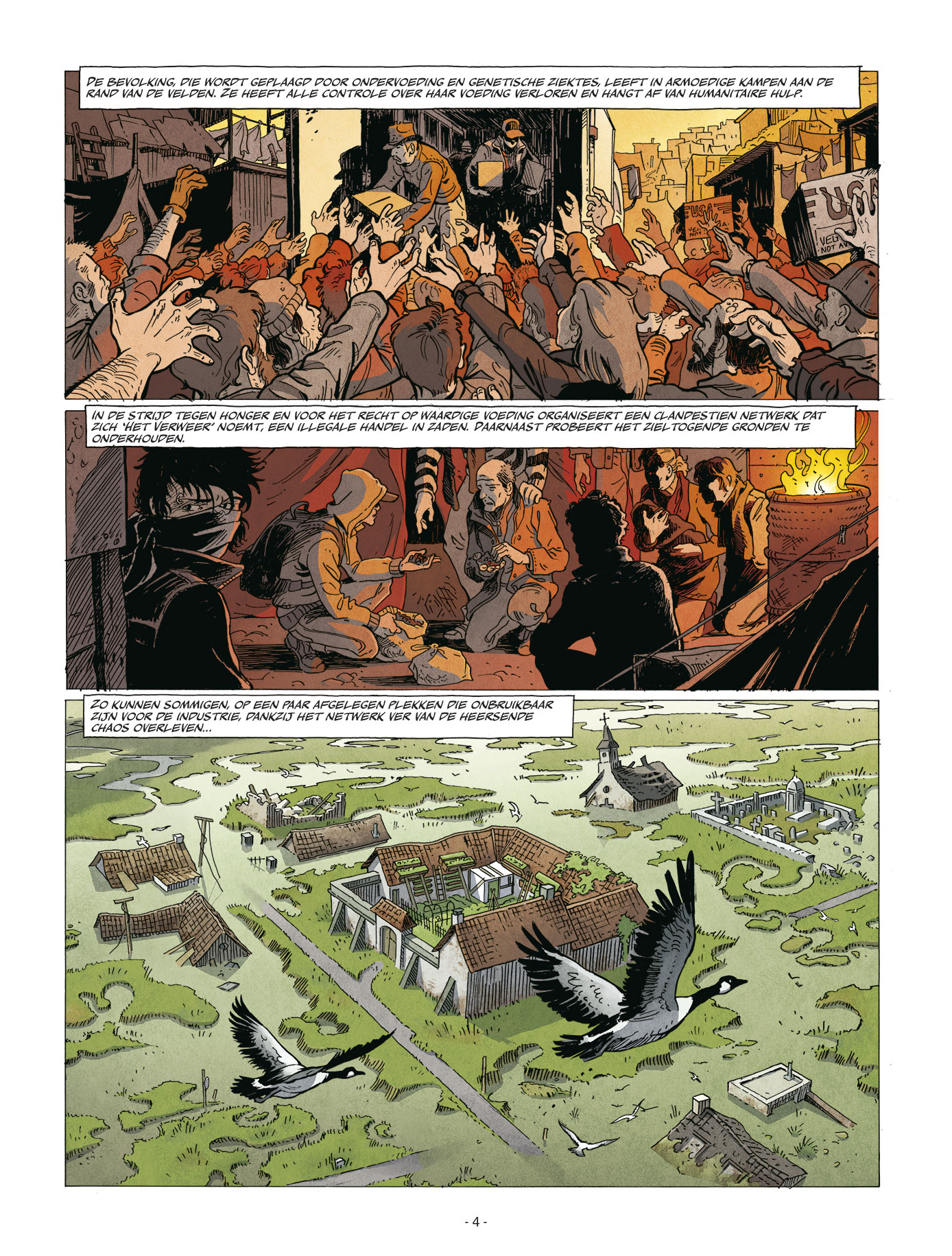 eerste deel van een vierluik!!! September 2068, Europa is een uitgestrekte landbouwwoestijn geworden. De machtige multinational Diosynta exploiteert 90% van het land en haar leger, de F.S.I. (Internal Security Forces), handhaaft meedogenloos haar eigendomsrechten. Om hongersnood en deze totalitaire hegemonie te bestrijden, is een enorm clandestien netwerk genaamd de veerkracht van zaden en vrije ideeën... Een verhaal van ecologische anticipatie, veerkracht is in de wereld van GGO's. wat Mad Max is voor olie.