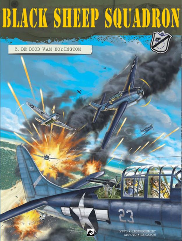 COMPLEET VERHAAL IN 6 HARDCOVER ALBUMS GELIMITEERDE OPLAGE! De volledige reeks is verkrijgbaar in promopakket Black Sheep Squadron Compleet In 1943 hadden de Japanners echt dikke pech. Eerst zien ze hen een buitengewoon vliegtuig tegemoet vliegen: de beroemde Corsair. Hun Zero weegt niet zwaar tegen zo'n monster. Ten tweede zit er in een van deze Corsairs... Boyington! Zijn meesterbrein (dat werkt op brandstof dat rijpt in eikenhouten vaten!) werkt constant door met maar één doel: de Japanners naar huis sturen!