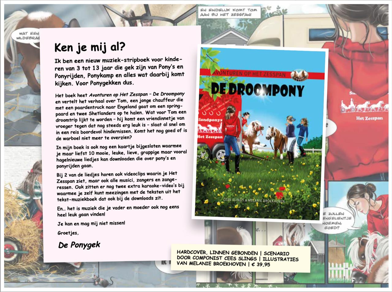 Tom is een jonge chauffeur die met een paardentruck naar Engeland gaat om een springpaard en twee Shetlanders op te halen. Wat voor Tom een droomtrip lijkt te worden - hij komt een vriendinnetje van vroeger tegen dat nog steeds erg leuk is - slaat al snel om in een reis boordevol hindernissen. Komt het nog goed, of is de warboel niet meer te overzien? In dit boek zit tevens een kaartje bijgesloten waarmee je maar liefst 10 mooie, leuke, lieve, grappige maar vooral hagelnieuwe liedjes kan downloaden die over pony's en ponyrijden gaan. Bij twee van de liedjes horen ook videoclips waarin je Het Zesspan ziet, maar ook de musici, zangers en zangeressen. Ook zitten er nog twee extra karaoke-video's bij waarmee je zelf kunt meezingen met de teksten uit het tekst-muziekboek dat ook bij de downloads zit.